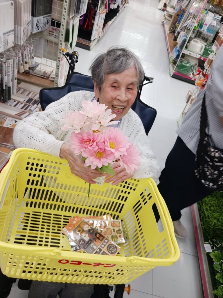 「敬老会」の買い物にお出かけしました! 送迎者に乗って近くのコーナンまでお出かけです。 「こんな大きな車に乗るん?」「久しぶりの買い物や」 「お金を払うのも昔とちがうから難しいな」とたくさんお話してくださいました! -